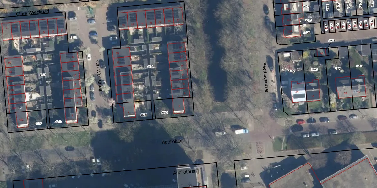 De informatie over dit adres is afkomstig uit officiële overheidsregistraties, voornamelijk de Basisregistratie Adressen en Gebouwen (BAG) en de Basisregistratie Kadaster (BRK). Deze gegevens worden beheerd door respectievelijk gemeenten en het Kadaster, en worden regelmatig bijgewerkt. Energielabelgegevens komen uit de database van de Rijksdienst voor Ondernemend Nederland (RVO).