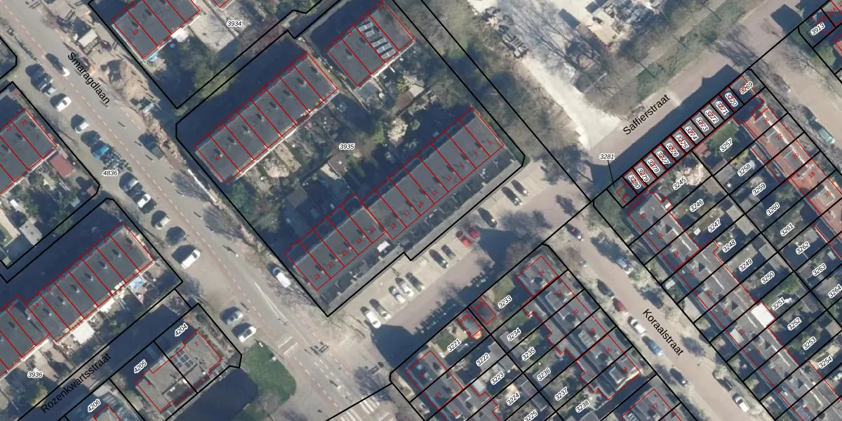 Het perceel waarop Saffierstraat 15 staat heeft een oppervlakte van 3540 m². Dit is een zeer groot perceel. De perceeloppervlakte wordt geregistreerd door het Kadaster. Gedetailleerde informatie over de maten van dit perceel kunt u vinden in het rapport Kadastrale kaart met maatvoering van Saffierstraat 15.