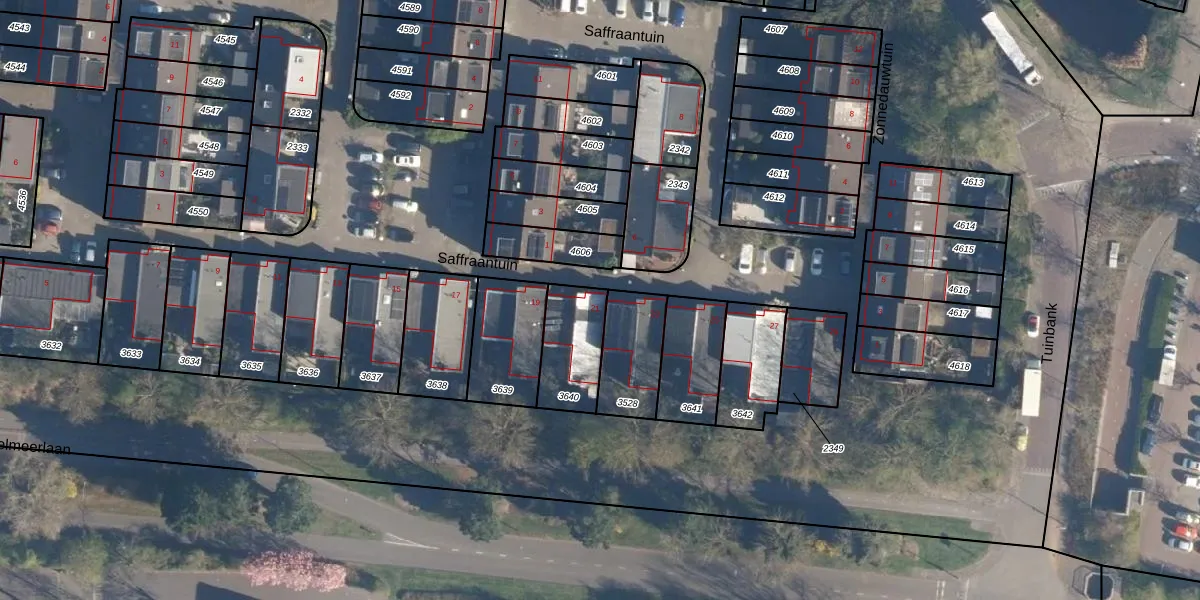 Saffraantuin 21 is gelegen op kadastraal perceel LDN01S3640. Deze kadastrale aanduiding is uniek en wordt gebruikt door het Kadaster om eigendomsrechten en andere zakelijke rechten vast te leggen. Het perceel maakt onderdeel uit van de kadastrale gemeente Leiden.