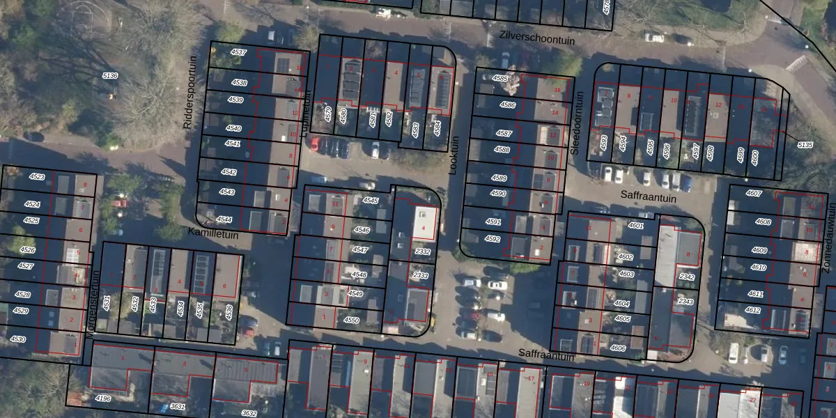 Gebruik de zoekbalk of klik op een perceel voor informatie over de adressen binnen dit perceel.