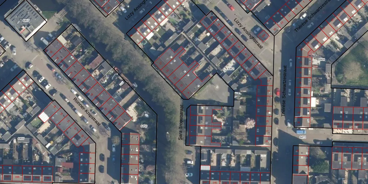 Sara Trooststraat 9 is gelegen op kadastraal perceel LDN01W6462. Deze kadastrale aanduiding is uniek en wordt gebruikt door het Kadaster om eigendomsrechten en andere zakelijke rechten vast te leggen. Het perceel maakt onderdeel uit van de kadastrale gemeente Leiden.