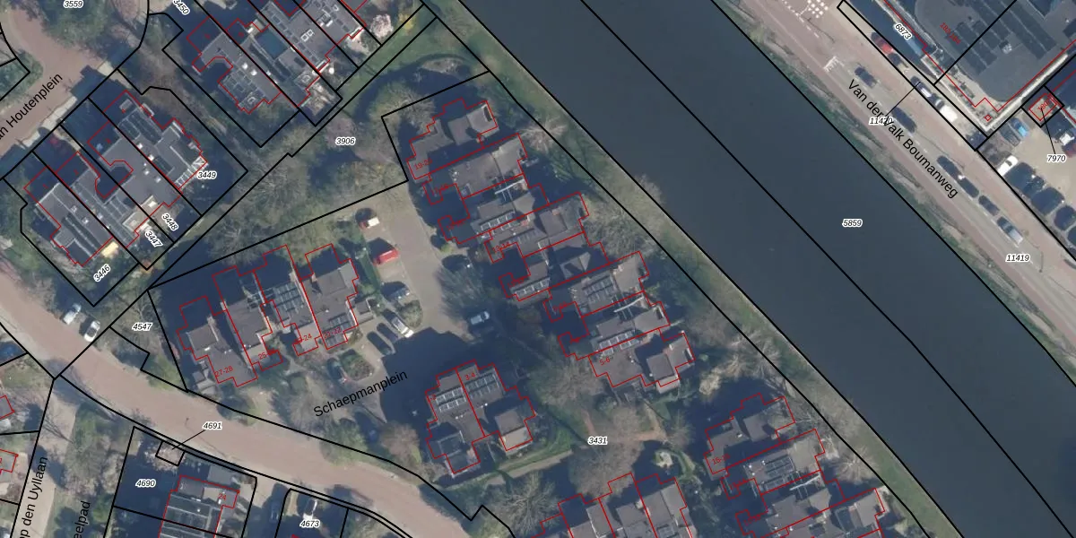 Het perceel waarop Schaepmanplein 12 staat heeft een oppervlakte van 8450 m². Dit is een zeer groot perceel. De perceeloppervlakte wordt geregistreerd door het Kadaster. Gedetailleerde informatie over de maten van dit perceel kunt u vinden in het rapport Kadastrale kaart met maatvoering van Schaepmanplein 12.