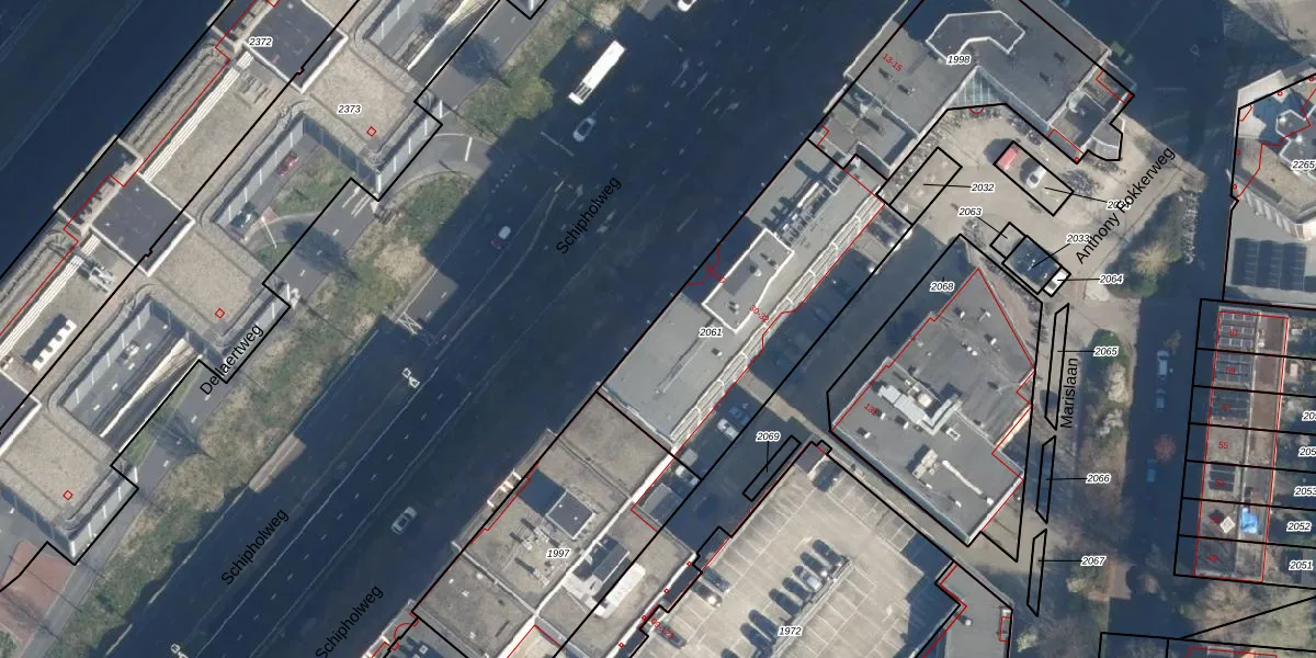 Het perceel waarop Schipholweg 9 staat heeft een oppervlakte van 1068 m². Dit is een zeer groot perceel. De perceeloppervlakte wordt geregistreerd door het Kadaster. Gedetailleerde informatie over de maten van dit perceel kunt u vinden in het rapport Kadastrale kaart met maatvoering van Schipholweg 9.