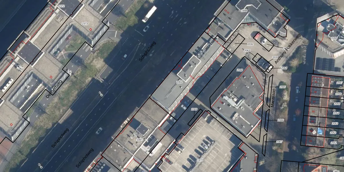Het perceel waarop Schipholweg 9-D staat heeft een oppervlakte van 1068 m². Dit is een zeer groot perceel. De perceeloppervlakte wordt geregistreerd door het Kadaster. Gedetailleerde informatie over de maten van dit perceel kunt u vinden in het rapport Kadastrale kaart met maatvoering van Schipholweg 9-D.