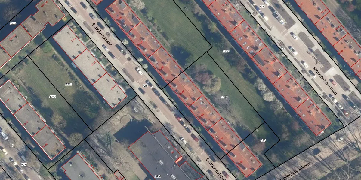 Scholtenstraat 40 is gelegen op kadastraal perceel LDN01Q1369. Deze kadastrale aanduiding is uniek en wordt gebruikt door het Kadaster om eigendomsrechten en andere zakelijke rechten vast te leggen. Het perceel maakt onderdeel uit van de kadastrale gemeente Leiden.