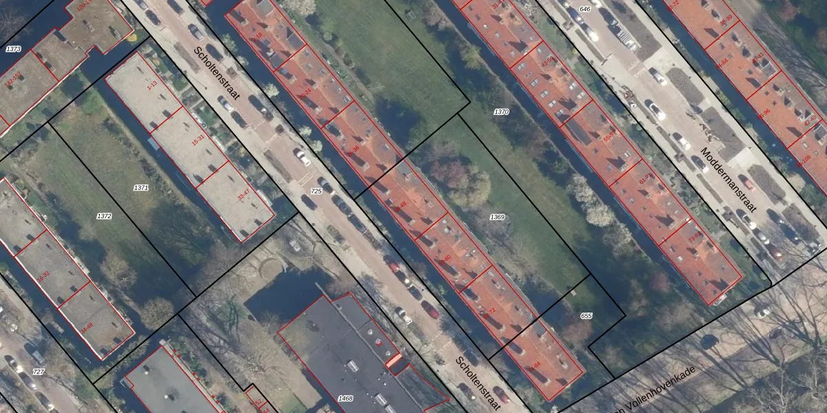 Het perceel waarop Scholtenstraat 48 staat heeft een oppervlakte van 1644 m². Dit is een zeer groot perceel. De perceeloppervlakte wordt geregistreerd door het Kadaster. Gedetailleerde informatie over de maten van dit perceel kunt u vinden in het rapport Kadastrale kaart met maatvoering van Scholtenstraat 48.