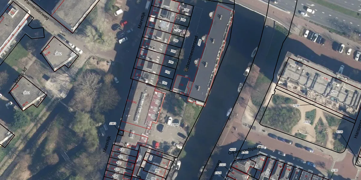 Het adres is gelegen op perceel 1686 in de sectie L en de kadastrale gemeente Leiden. De kadastrale aanduiding is aldus LDN01-L-1686. De gemiddelde perceeloppervlakte in de kadastrale gemeente Leiden is 704,01 m². Dit perceel is met zijn 1359 m² dus groter dan gemiddeld. De grootste perceeloppervlakte in de kadastrale gemeente is 51,8 ha. De kleinste oppervlakte bedraagt 0 m². Op het perceel liggen in totaal 35 adressen. De huidige grenzen van het perceel zijn digitaal in de Basisregistratie Kadaster (BRK) geregistreerd op 17-11-2010.