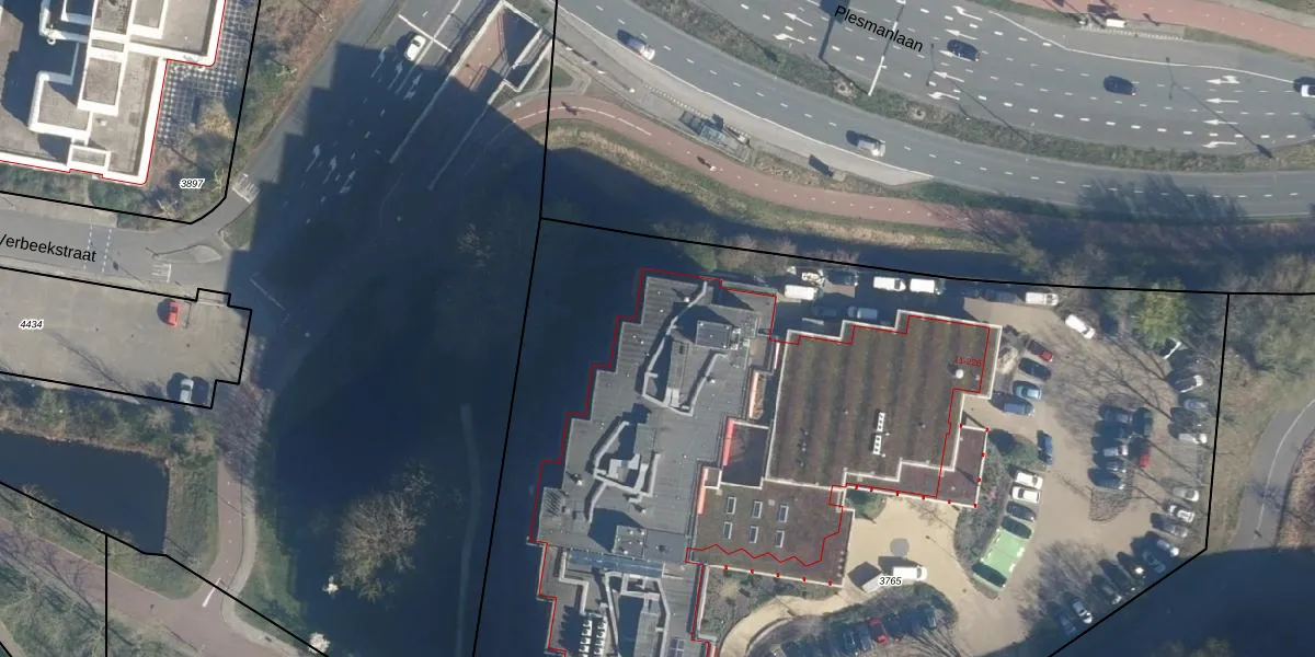 Het perceel waarop het adres ligt is LDN01-X-3765. De afkorting 'LDN01' staat voor kadastrale gemeente Leiden. De oppervlakte van het perceel is 8290 m². Dat is groter dan gemiddeld in Leiden, waar de gemiddelde perceeloppervlakte op 703,94 m² ligt. Het kleinste perceel in de kadastrale gemeente is 0 m² groot. De grootste perceeloppervlakte is 51,8 ha. Er zijn 189 adressen aanwezig op het perceel. In de Basisregistratie Kadaster (BRK) werden de grenzen van het perceel geregistreerd op 05-12-2008.