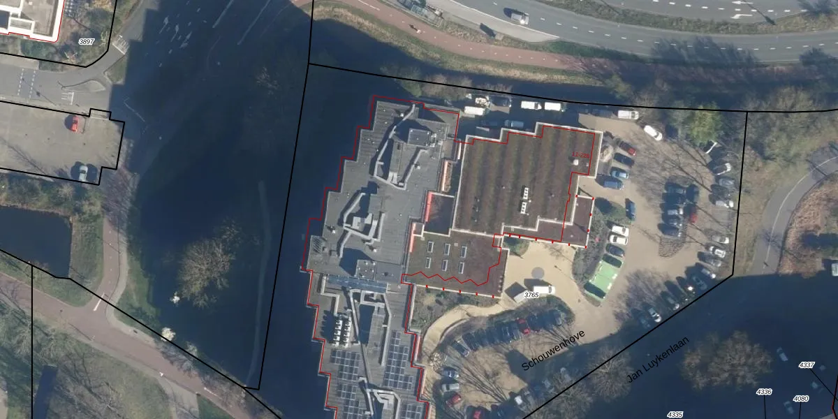 Het perceel waarop Schouwenhove 23 staat heeft een oppervlakte van 8290 m². Dit is een zeer groot perceel. De perceeloppervlakte wordt geregistreerd door het Kadaster. Gedetailleerde informatie over de maten van dit perceel kunt u vinden in het rapport Kadastrale kaart met maatvoering van Schouwenhove 23.