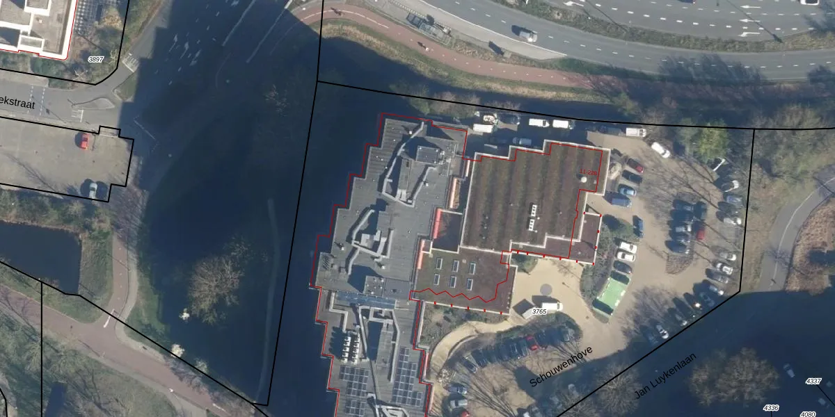 Het perceel waarop Schouwenhove 64 staat heeft een oppervlakte van 8290 m². Dit is een zeer groot perceel. De perceeloppervlakte wordt geregistreerd door het Kadaster. Gedetailleerde informatie over de maten van dit perceel kunt u vinden in het rapport Kadastrale kaart met maatvoering van Schouwenhove 64.
