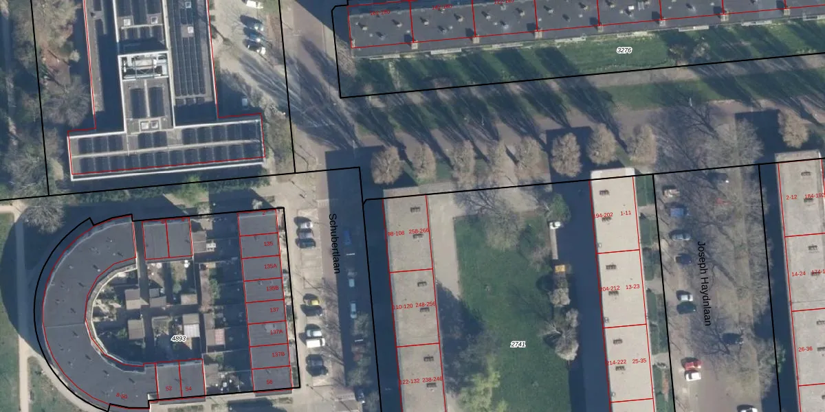 Het perceel waarop Schubertlaan 102 staat heeft een oppervlakte van 5700 m². Dit is een zeer groot perceel. De perceeloppervlakte wordt geregistreerd door het Kadaster. Gedetailleerde informatie over de maten van dit perceel kunt u vinden in het rapport Kadastrale kaart met maatvoering van Schubertlaan 102.