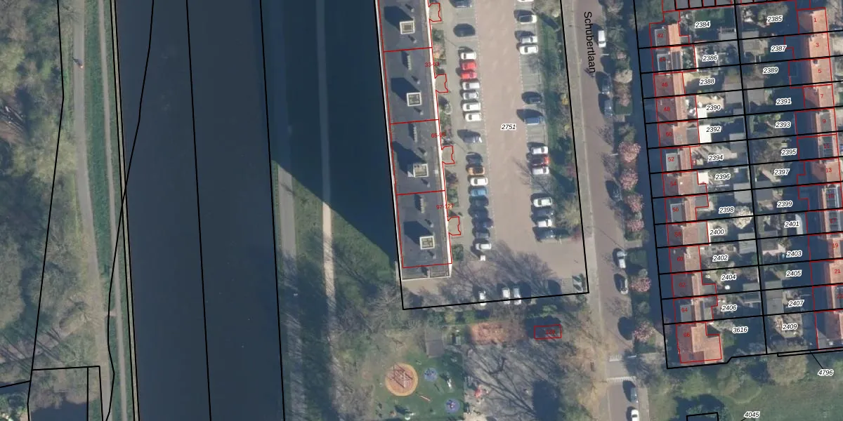 Schubertlaan 105 is gelegen op kadastraal perceel LDN01O2751. Deze kadastrale aanduiding is uniek en wordt gebruikt door het Kadaster om eigendomsrechten en andere zakelijke rechten vast te leggen. Het perceel maakt onderdeel uit van de kadastrale gemeente Leiden.