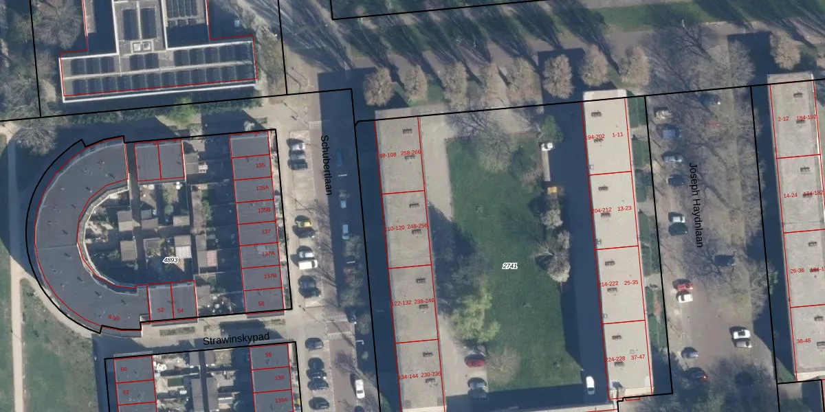 Schubertlaan 114 is gelegen op kadastraal perceel LDN01O2741. Deze kadastrale aanduiding is uniek en wordt gebruikt door het Kadaster om eigendomsrechten en andere zakelijke rechten vast te leggen. Het perceel maakt onderdeel uit van de kadastrale gemeente Leiden.