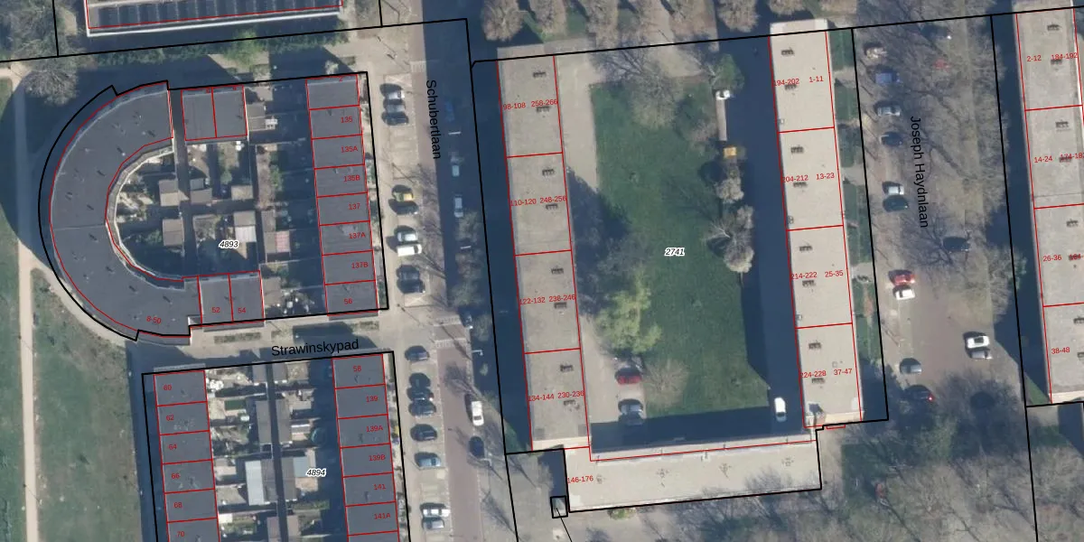 Schubertlaan 124 is gelegen op kadastraal perceel LDN01O2741. Deze kadastrale aanduiding is uniek en wordt gebruikt door het Kadaster om eigendomsrechten en andere zakelijke rechten vast te leggen. Het perceel maakt onderdeel uit van de kadastrale gemeente Leiden.