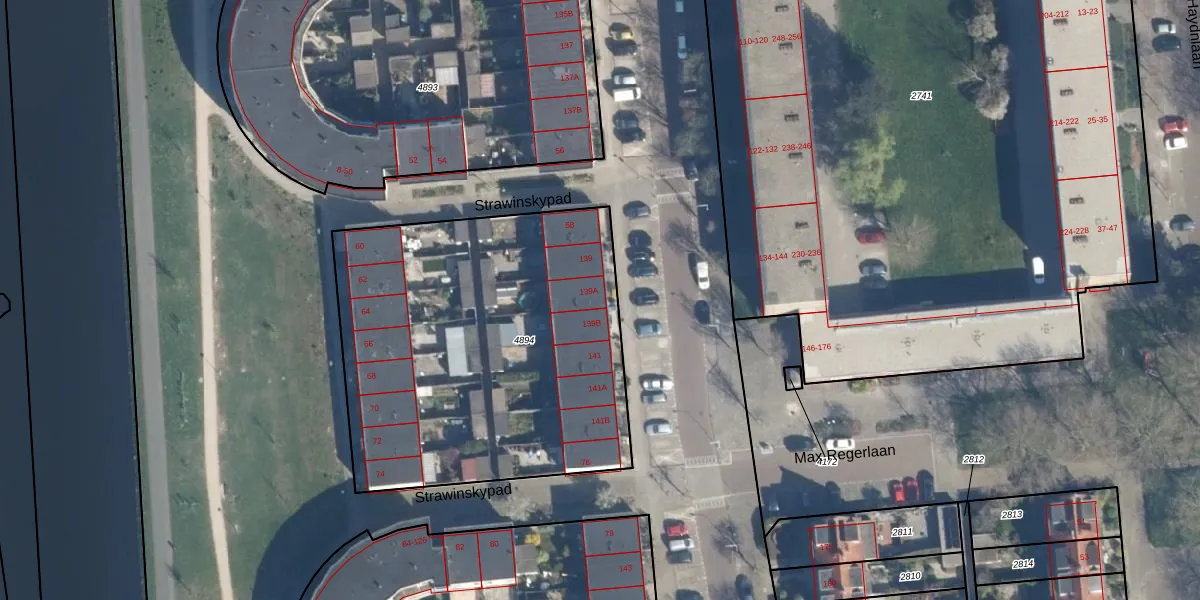 Het perceel waarop het adres ligt is LDN01-O-4894. De afkorting 'LDN01' staat voor kadastrale gemeente Leiden. De gemiddelde perceeloppervlakte in de kadastrale gemeente Leiden is 703,99 m². Dit perceel is met zijn 2029 m² dus groter dan gemiddeld. Het kleinste perceel in de kadastrale gemeente is 0 m² groot. De grootste perceeloppervlakte is 51,8 ha. Er zijn 16 adressen aanwezig op het perceel. De laatste wijziging in het de Basisregistratie Kadaster (BRK) was op 18-08-2003.