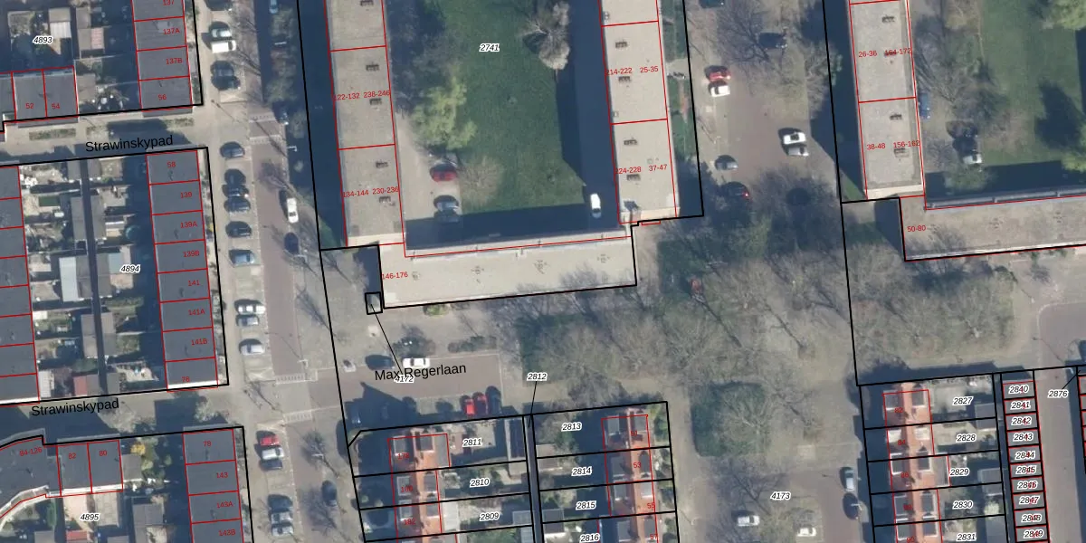 Het perceel waarop het adres ligt is LDN01-O-2741. De afkorting 'LDN01' staat voor kadastrale gemeente Leiden. De gemiddelde perceeloppervlakte in de kadastrale gemeente Leiden is 704,9 m². Dit perceel is met zijn 5700 m² dus groter dan gemiddeld. Het kleinste perceel in de kadastrale gemeente is 0 m² groot. De grootste perceeloppervlakte is 51,8 ha. Op het perceel zijn 101 adressen aanwezig. De huidige grenzen van het perceel zijn digitaal in de Basisregistratie Kadaster (BRK) geregistreerd op 07-12-2007.