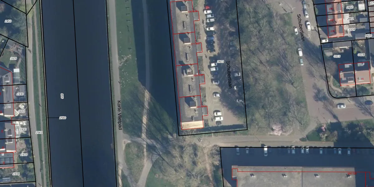 Het perceel waarop Schubertlaan 235 staat heeft een oppervlakte van 2738 m². Dit is een zeer groot perceel. De perceeloppervlakte wordt geregistreerd door het Kadaster. Gedetailleerde informatie over de maten van dit perceel kunt u vinden in het rapport Kadastrale kaart met maatvoering van Schubertlaan 235.