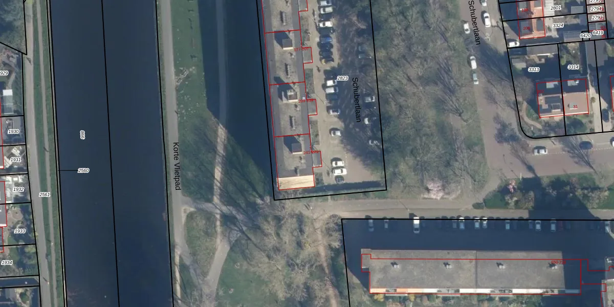 Het perceel waarop Schubertlaan 243 staat heeft een oppervlakte van 2738 m². Dit is een zeer groot perceel. De perceeloppervlakte wordt geregistreerd door het Kadaster. Gedetailleerde informatie over de maten van dit perceel kunt u vinden in het rapport Kadastrale kaart met maatvoering van Schubertlaan 243.