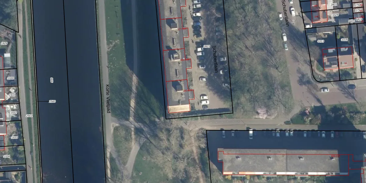 Schubertlaan 245 is gelegen op kadastraal perceel LDN01O2823. Deze kadastrale aanduiding is uniek en wordt gebruikt door het Kadaster om eigendomsrechten en andere zakelijke rechten vast te leggen. Het perceel maakt onderdeel uit van de kadastrale gemeente Leiden.