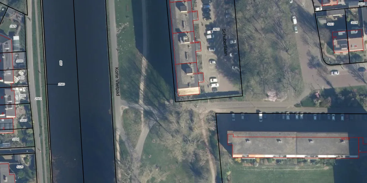 Het perceel waarop Schubertlaan 269 staat heeft een oppervlakte van 2738 m². Dit is een zeer groot perceel. De perceeloppervlakte wordt geregistreerd door het Kadaster. Gedetailleerde informatie over de maten van dit perceel kunt u vinden in het rapport Kadastrale kaart met maatvoering van Schubertlaan 269.