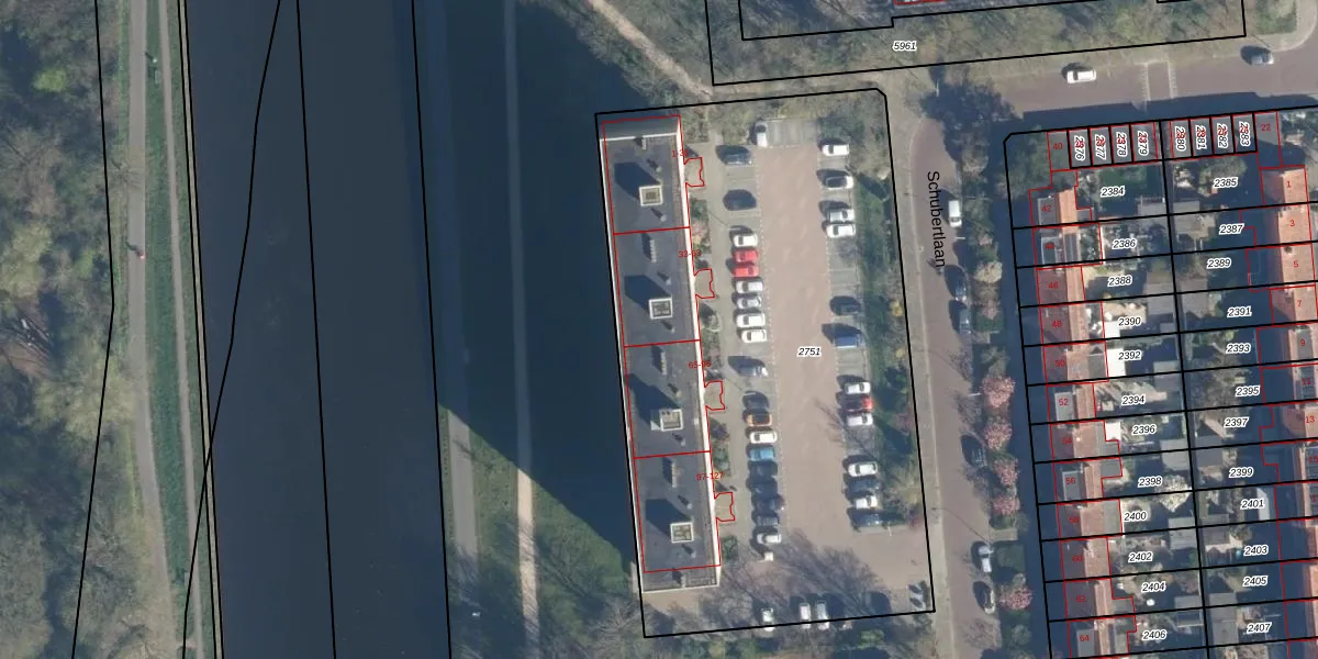 Schubertlaan 57 is gelegen op kadastraal perceel LDN01O2751. Deze kadastrale aanduiding is uniek en wordt gebruikt door het Kadaster om eigendomsrechten en andere zakelijke rechten vast te leggen. Het perceel maakt onderdeel uit van de kadastrale gemeente Leiden.
