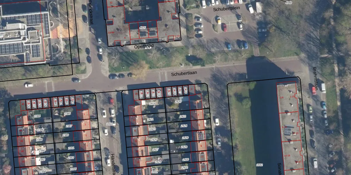 Gebruik de zoekbalk of klik op een perceel voor informatie over de adressen binnen dit perceel.