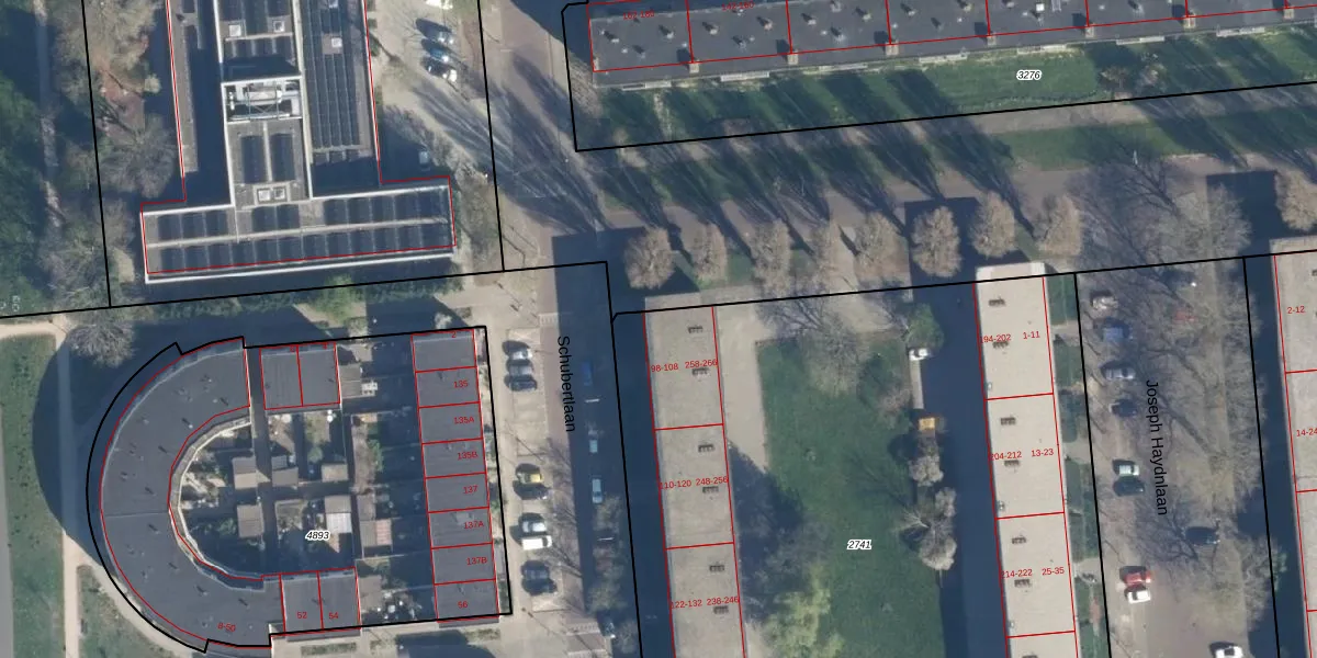 Het perceel waarop Schubertlaan 98 staat heeft een oppervlakte van 5700 m². Dit is een zeer groot perceel. De perceeloppervlakte wordt geregistreerd door het Kadaster. Gedetailleerde informatie over de maten van dit perceel kunt u vinden in het rapport Kadastrale kaart met maatvoering van Schubertlaan 98.