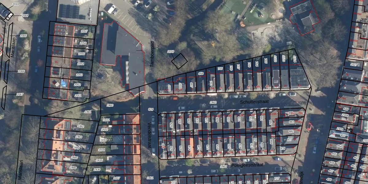 Het perceel waarop Schutterstraat 2-F staat heeft een oppervlakte van 73 m². Dit is een klein perceel. De perceeloppervlakte wordt geregistreerd door het Kadaster. Gedetailleerde informatie over de maten van dit perceel kunt u vinden in het rapport Kadastrale kaart met maatvoering van Schutterstraat 2-F.