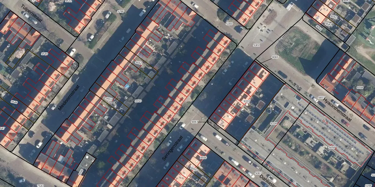 Seringenstraat 41 is gelegen op kadastraal perceel LDN01M9550. Deze kadastrale aanduiding is uniek en wordt gebruikt door het Kadaster om eigendomsrechten en andere zakelijke rechten vast te leggen. Het perceel maakt onderdeel uit van de kadastrale gemeente Leiden.