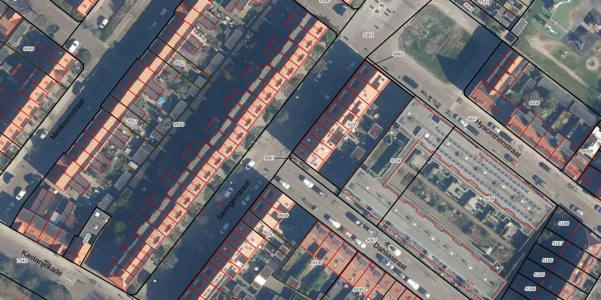 Seringenstraat 44 is gelegen op kadastraal perceel LDN01M9333. Deze kadastrale aanduiding is uniek en wordt gebruikt door het Kadaster om eigendomsrechten en andere zakelijke rechten vast te leggen. Het perceel maakt onderdeel uit van de kadastrale gemeente Leiden.