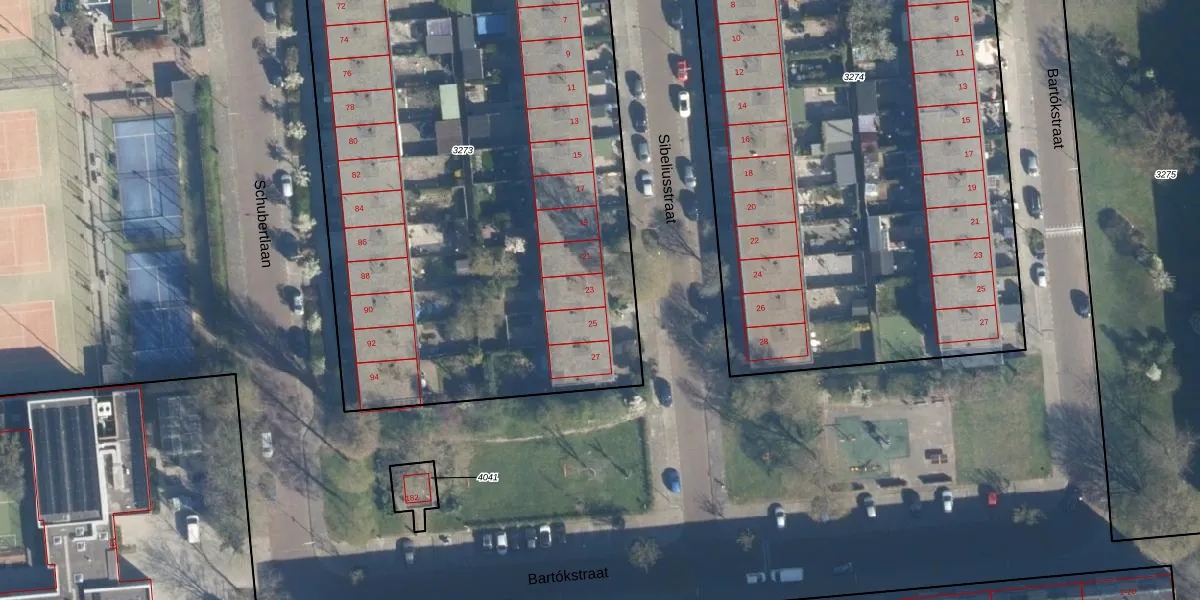 Het perceel waarop Sibeliusstraat 23 staat heeft een oppervlakte van 4300 m². Dit is een zeer groot perceel. De perceeloppervlakte wordt geregistreerd door het Kadaster. Gedetailleerde informatie over de maten van dit perceel kunt u vinden in het rapport Kadastrale kaart met maatvoering van Sibeliusstraat 23.