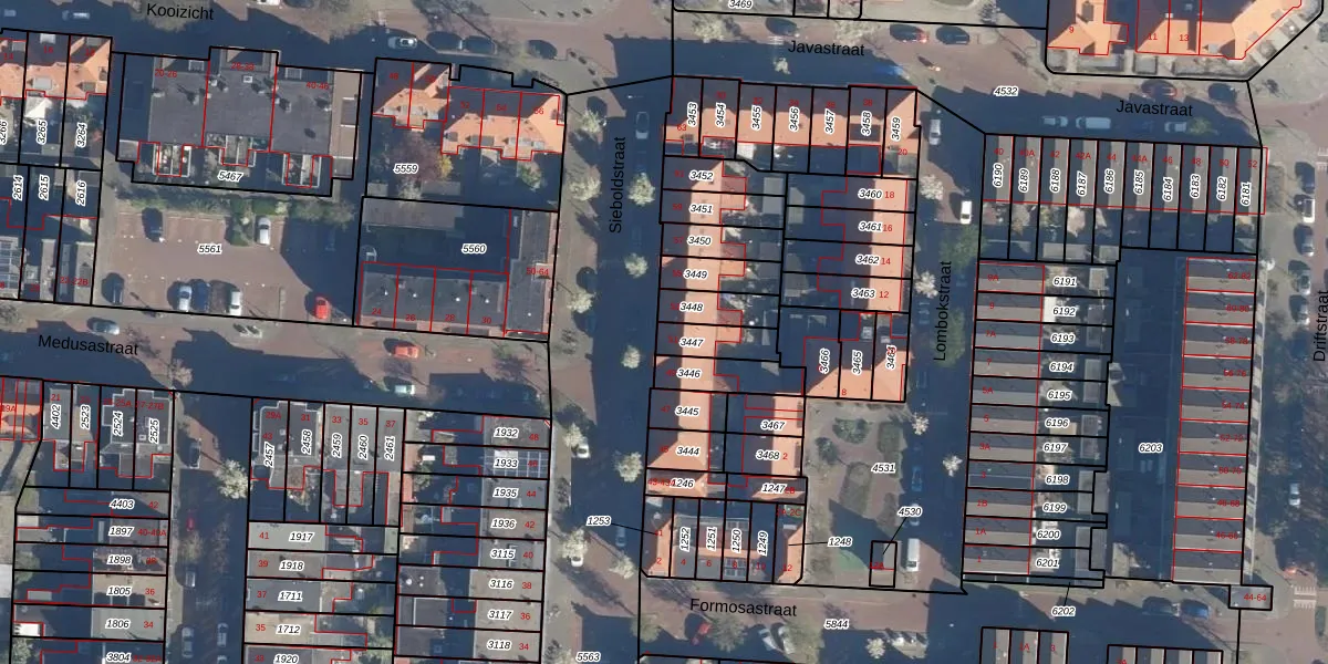 Sieboldstraat 51 is gelegen op kadastraal perceel LDN01K3447. Deze kadastrale aanduiding is uniek en wordt gebruikt door het Kadaster om eigendomsrechten en andere zakelijke rechten vast te leggen. Het perceel maakt onderdeel uit van de kadastrale gemeente Leiden.