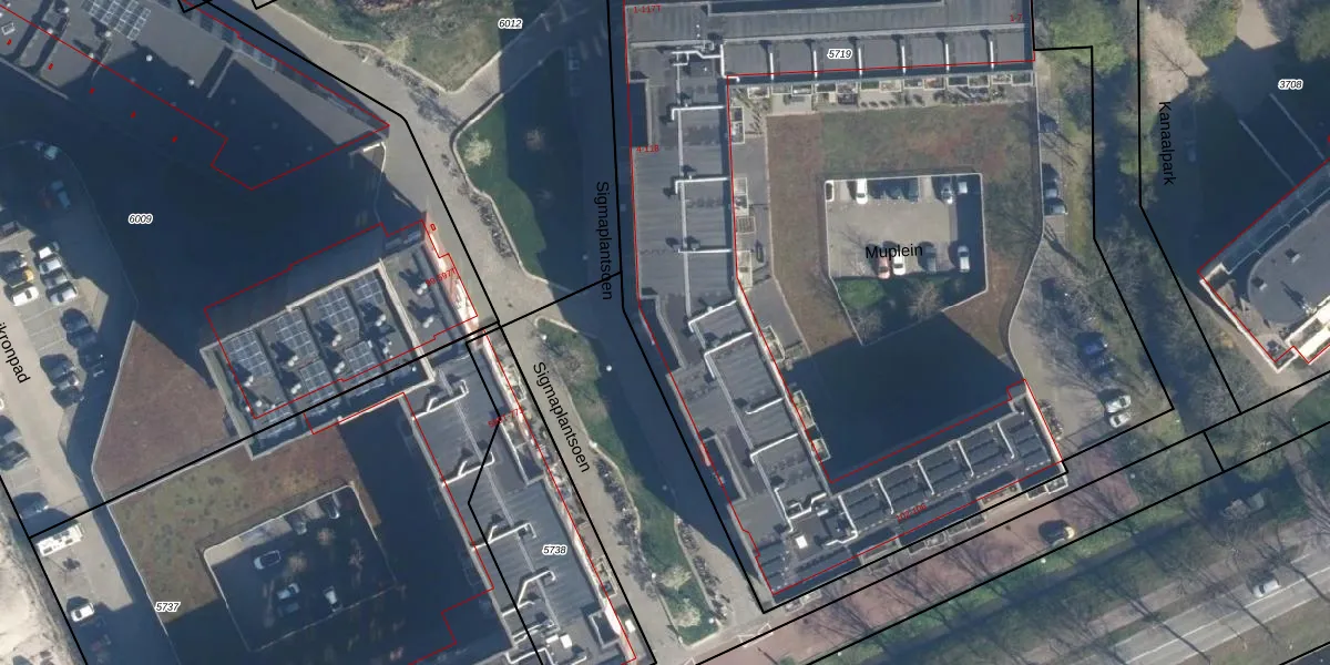 Het perceel waarop Sigmaplantsoen 12 staat heeft een oppervlakte van 5790 m². Dit is een zeer groot perceel. De perceeloppervlakte wordt geregistreerd door het Kadaster. Gedetailleerde informatie over de maten van dit perceel kunt u vinden in het rapport Kadastrale kaart met maatvoering van Sigmaplantsoen 12.