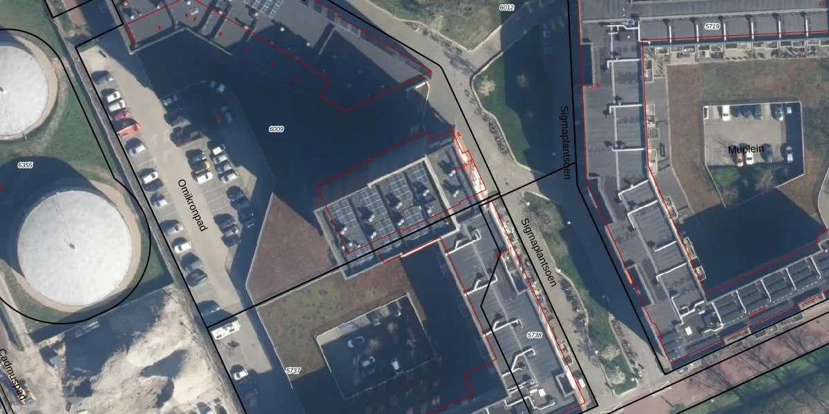 Het perceel waarop Sigmaplantsoen 525 staat heeft een oppervlakte van 5550 m². Dit is een zeer groot perceel. De perceeloppervlakte wordt geregistreerd door het Kadaster. Gedetailleerde informatie over de maten van dit perceel kunt u vinden in het rapport Kadastrale kaart met maatvoering van Sigmaplantsoen 525.