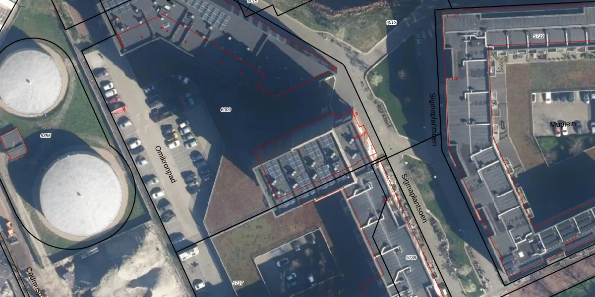 Het perceel waarop Sigmaplantsoen 561 staat heeft een oppervlakte van 5550 m². Dit is een zeer groot perceel. De perceeloppervlakte wordt geregistreerd door het Kadaster. Gedetailleerde informatie over de maten van dit perceel kunt u vinden in het rapport Kadastrale kaart met maatvoering van Sigmaplantsoen 561.