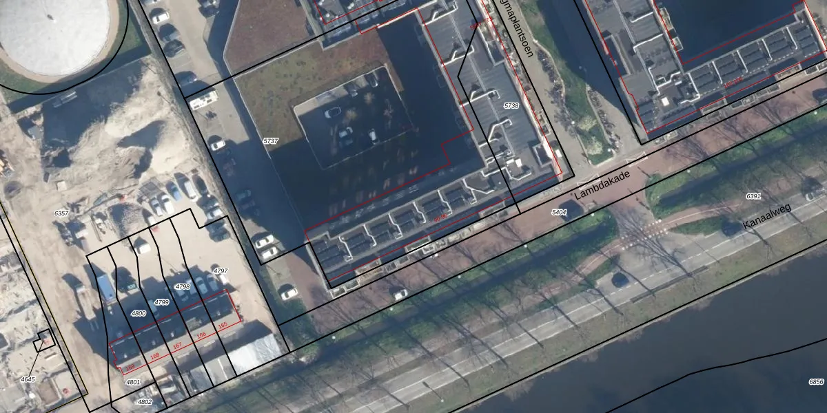 Het adres ligt op het perceel LDN01-O-5737, dat zich in de kadastrale gemeente Leiden bevindt. De oppervlakte van het perceel is 3549 m². Dat is groter dan gemiddeld in Leiden, waar de gemiddelde perceeloppervlakte op 703,94 m² ligt. Het grootste perceel in de kadastrale gemeente is 51,8 ha. Het kleinste perceel heeft een oppervlakte van 0 m². Op het perceel zijn 47 adressen aanwezig. De laatste wijziging in het de Basisregistratie Kadaster (BRK) was op 19-08-2020.