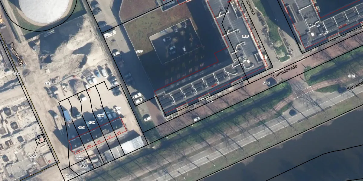 Het adres ligt op het perceel LDN01-O-5737, dat zich in de kadastrale gemeente Leiden bevindt. De oppervlakte van het perceel is 3549 m². Dat is groter dan gemiddeld in Leiden, waar de gemiddelde perceeloppervlakte op 703,94 m² ligt. Het grootste perceel in de kadastrale gemeente is 51,8 ha. Het kleinste perceel heeft een oppervlakte van 0 m². Op het perceel zijn 47 adressen aanwezig. De huidige grenzen van het perceel zijn digitaal in de Basisregistratie Kadaster (BRK) geregistreerd op 19-08-2020.