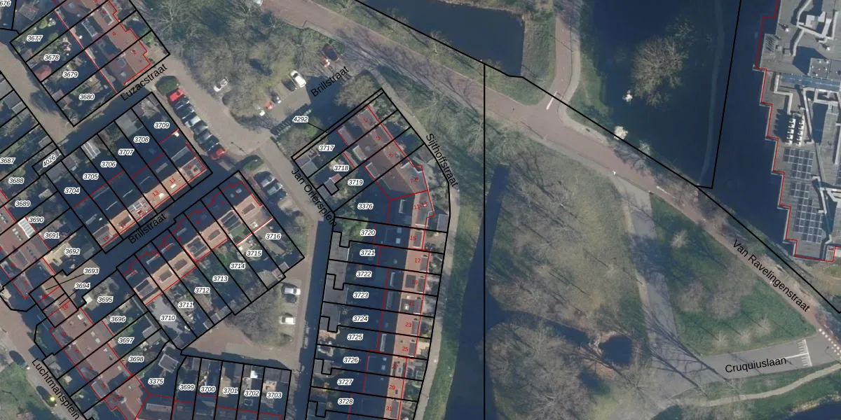 Het adres is gelegen op perceel 3376 in de sectie X en de kadastrale gemeente Leiden. De kadastrale aanduiding is aldus LDN01-X-3376. De gemiddelde perceelgrootte in Leiden is 703,94 m². Dit perceel is kleiner: de perceeloppervlakte bedraagt 333 m². Het grootste perceel in de kadastrale gemeente is 51,8 ha. Het kleinste perceel heeft een oppervlakte van 0 m². Op het perceel liggen in totaal 4 adressen. In de Basisregistratie Kadaster (BRK) werden de grenzen van het perceel geregistreerd op 28-12-2006.