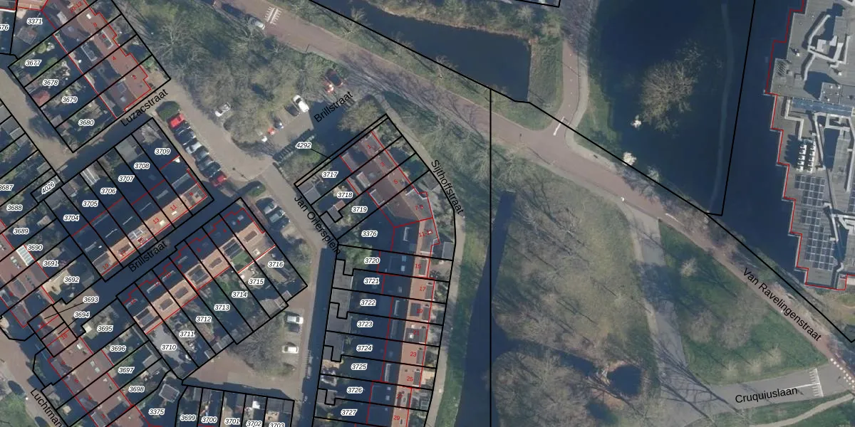 Het adres is gelegen op perceel 3376 in de sectie X en de kadastrale gemeente Leiden. De kadastrale aanduiding is aldus LDN01-X-3376. De gemiddelde perceelgrootte in Leiden is 703,99 m². Dit perceel is kleiner: de perceeloppervlakte bedraagt 333 m². Het grootste perceel in de kadastrale gemeente is 51,8 ha. Het kleinste perceel heeft een oppervlakte van 0 m². Er zijn 4 adressen aanwezig op het perceel. In de Basisregistratie Kadaster (BRK) werden de grenzen van het perceel geregistreerd op 28-12-2006.