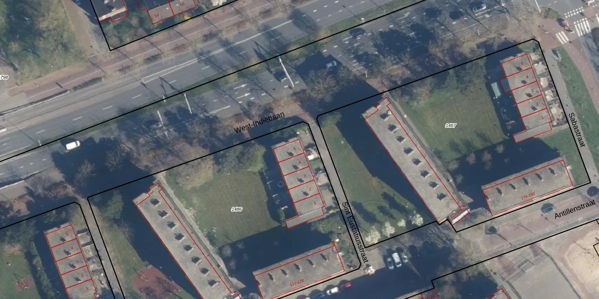 Het perceel waarop Sint Eustatiusstraat 5 staat heeft een oppervlakte van 3980 m². Dit is een zeer groot perceel. De perceeloppervlakte wordt geregistreerd door het Kadaster. Gedetailleerde informatie over de maten van dit perceel kunt u vinden in het rapport Kadastrale kaart met maatvoering van Sint Eustatiusstraat 5.