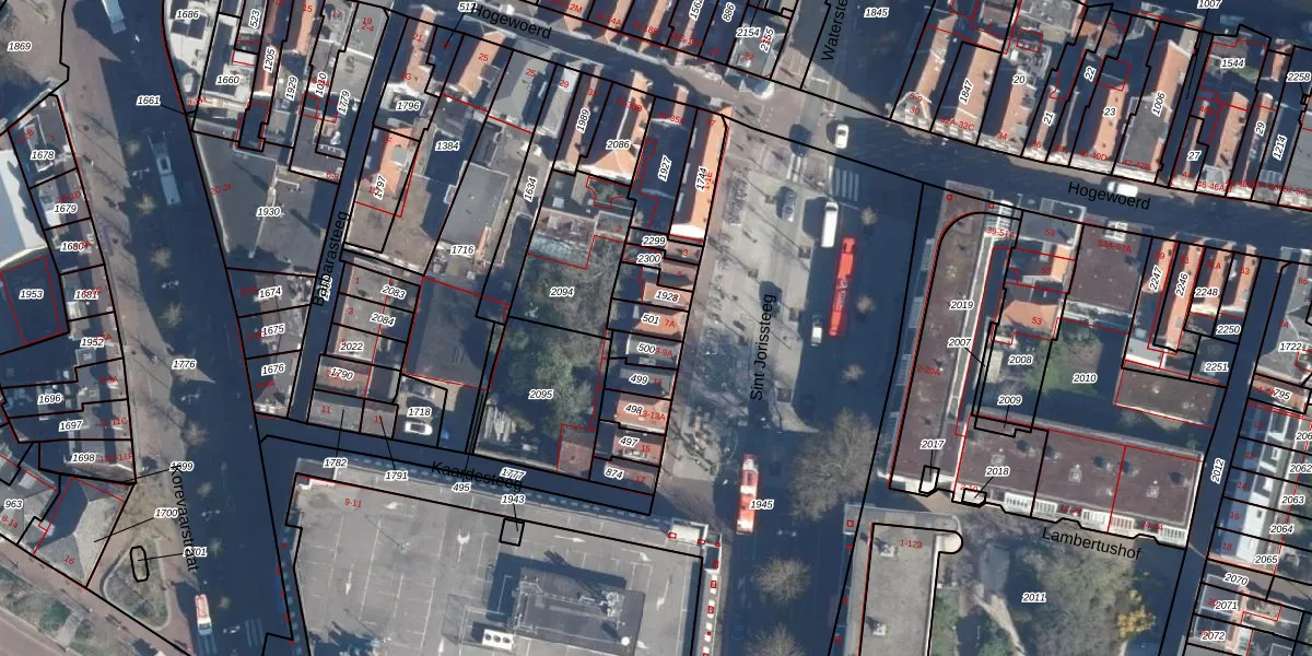Sint Jorissteeg 7-A is gelegen op kadastraal perceel LDN01D501. Deze kadastrale aanduiding is uniek en wordt gebruikt door het Kadaster om eigendomsrechten en andere zakelijke rechten vast te leggen. Het perceel maakt onderdeel uit van de kadastrale gemeente Leiden.