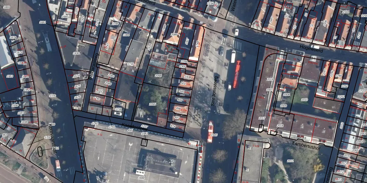 Sint Jorissteeg 9-A is gelegen op kadastraal perceel LDN01D500. Deze kadastrale aanduiding is uniek en wordt gebruikt door het Kadaster om eigendomsrechten en andere zakelijke rechten vast te leggen. Het perceel maakt onderdeel uit van de kadastrale gemeente Leiden.