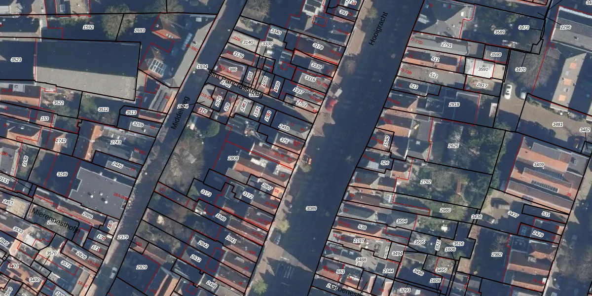 Het adres is gelegen op perceel 375 in de sectie I en de kadastrale gemeente Leiden. De kadastrale aanduiding is aldus LDN01-I-375. De gemiddelde perceelgrootte in Leiden is 703,94 m². Dit perceel is kleiner: de perceeloppervlakte bedraagt 76 m². De grootste perceeloppervlakte in de kadastrale gemeente is 51,8 ha. De kleinste oppervlakte bedraagt 0 m². Er zijn 4 adressen aanwezig op het perceel. In de Basisregistratie Kadaster (BRK) werden de grenzen van het perceel geregistreerd op 06-02-1998.