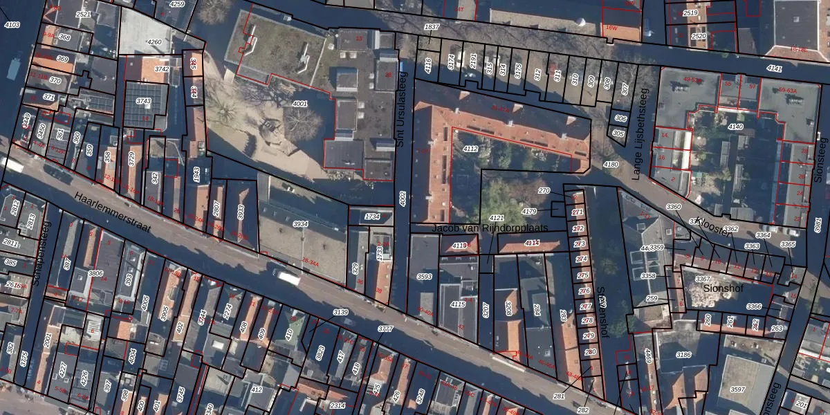 Het perceel waarop Sint Ursulasteeg 9 staat heeft een oppervlakte van 970 m². Dit is een groot perceel. De perceeloppervlakte wordt geregistreerd door het Kadaster. Gedetailleerde informatie over de maten van dit perceel kunt u vinden in het rapport Kadastrale kaart met maatvoering van Sint Ursulasteeg 9.