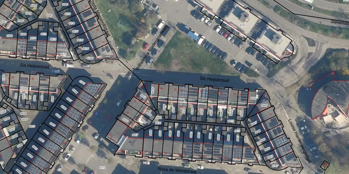 Sis Heijsterpad 36 is gelegen op kadastraal perceel LDN01W6637. Deze kadastrale aanduiding is uniek en wordt gebruikt door het Kadaster om eigendomsrechten en andere zakelijke rechten vast te leggen. Het perceel maakt onderdeel uit van de kadastrale gemeente Leiden.