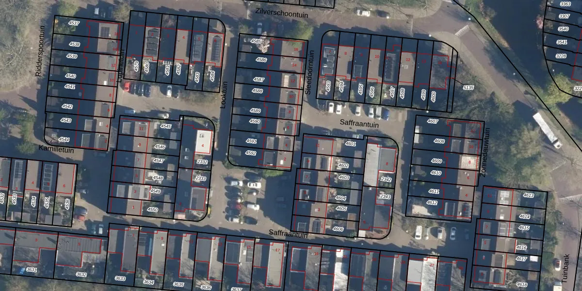 Gebruik de zoekbalk of klik op een perceel voor informatie over de adressen binnen dit perceel.
