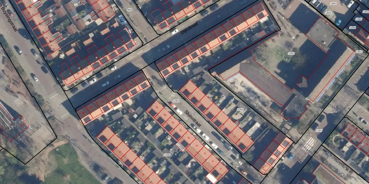 Sluisstraat 15 is gelegen op kadastraal perceel LDN01R1092. Deze kadastrale aanduiding is uniek en wordt gebruikt door het Kadaster om eigendomsrechten en andere zakelijke rechten vast te leggen. Het perceel maakt onderdeel uit van de kadastrale gemeente Leiden.