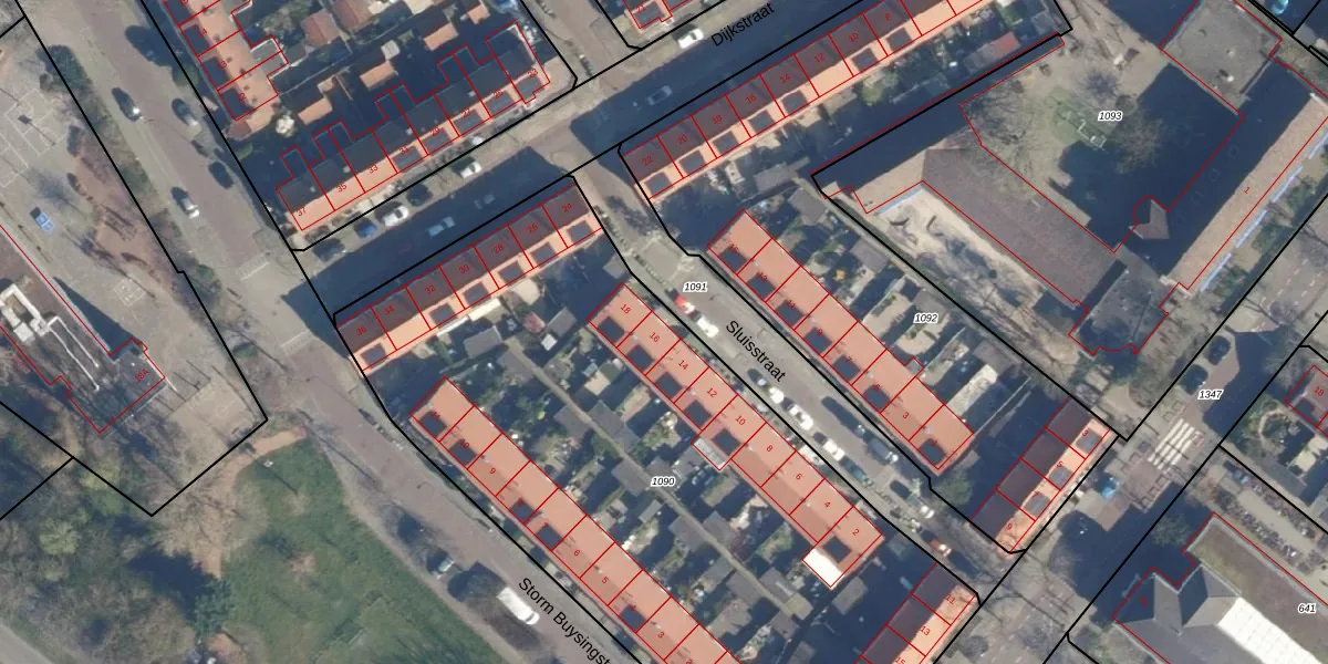 Sluisstraat 16 is gelegen op kadastraal perceel LDN01R1090. Deze kadastrale aanduiding is uniek en wordt gebruikt door het Kadaster om eigendomsrechten en andere zakelijke rechten vast te leggen. Het perceel maakt onderdeel uit van de kadastrale gemeente Leiden.