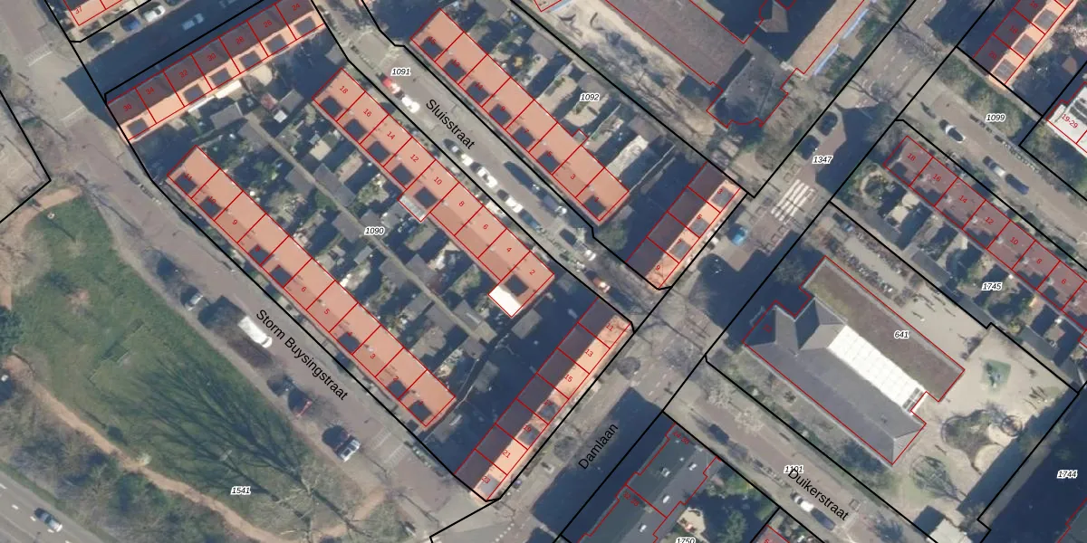 Sluisstraat 2 is gelegen op kadastraal perceel LDN01R1090. Deze kadastrale aanduiding is uniek en wordt gebruikt door het Kadaster om eigendomsrechten en andere zakelijke rechten vast te leggen. Het perceel maakt onderdeel uit van de kadastrale gemeente Leiden.