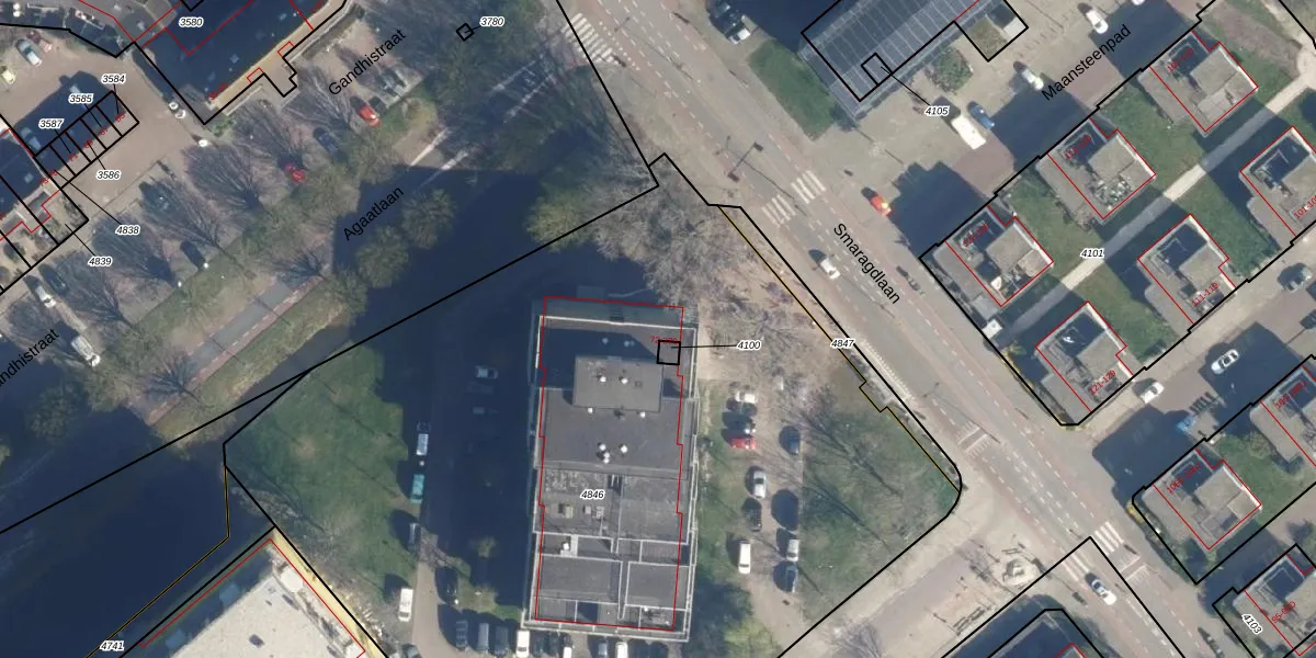 Het perceel waarop Smaragdlaan 118 staat heeft een oppervlakte van 6036 m². Dit is een zeer groot perceel. De perceeloppervlakte wordt geregistreerd door het Kadaster. Gedetailleerde informatie over de maten van dit perceel kunt u vinden in het rapport Kadastrale kaart met maatvoering van Smaragdlaan 118.